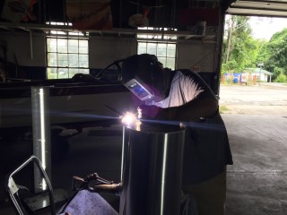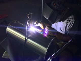 After the tank is all tack welded together we then weld the baffle in place.